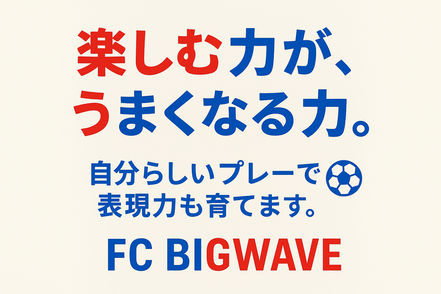 私たちFC BIGWAVEは、この最も成長する年代に「楽しみながら学び、自由に表現するサッカー」を提供します。